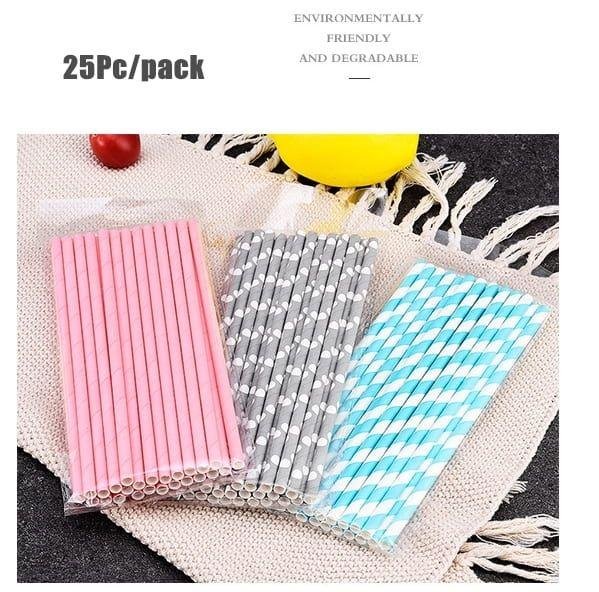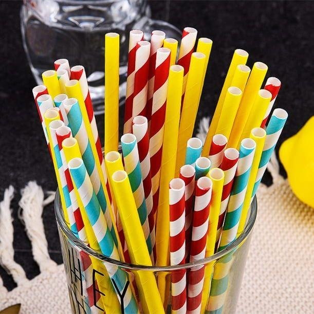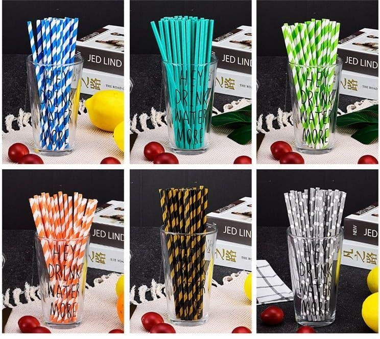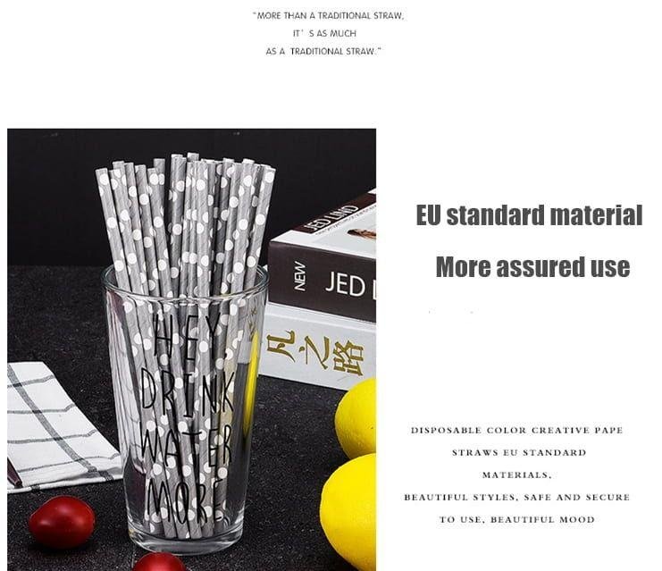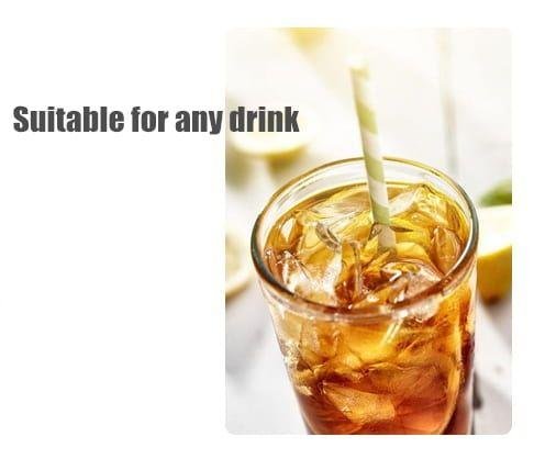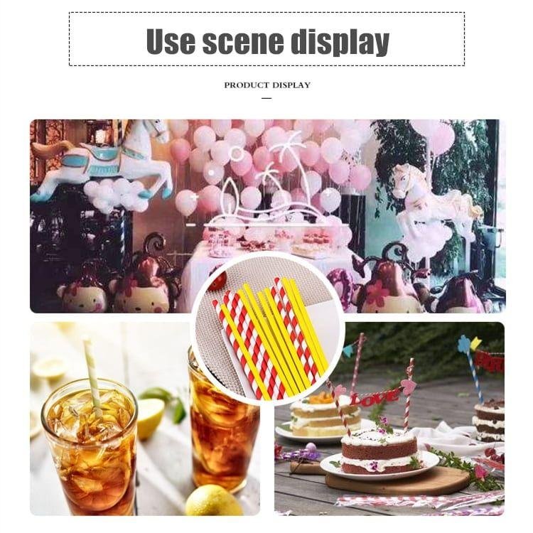 The straw is made of safe paper, and the product has passed FSC, FDA, LFGB and the European Union's standard tests. After use, it completely degrades and meets the hygienic requirements of European and American countries for food safety packaging. It can be used in various places such as home, holiday birthday parties, dessert arrangement, children's DY appliances, etc. Straw length: 195cm hole thickness 0.6cm. Soaking for too long will make it a little soft, but it will not affect the use. The straws are all printed with food grade ink.Random Color